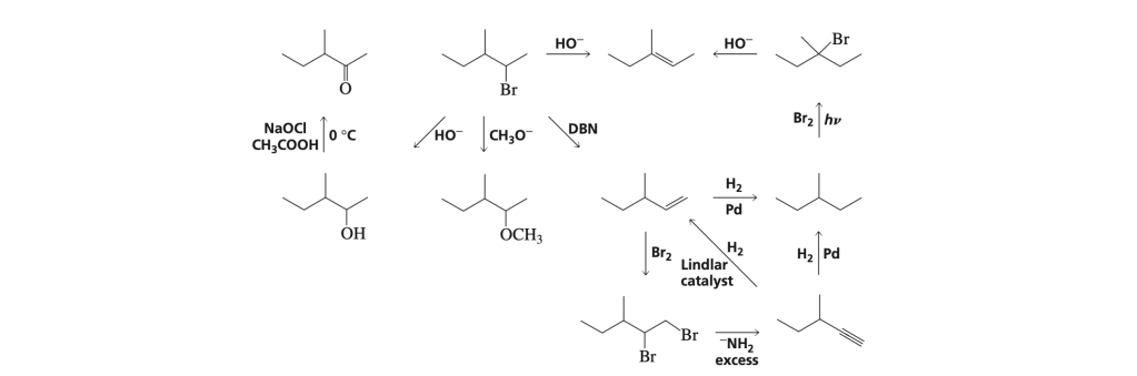 Se lo scheletro di atomi di carbonio è modificato, ma il numero di atomi di carbonio è lo stesso, si devono prendere in considerazione le reazioni che portano alla formazione di intermedi carbocationici.