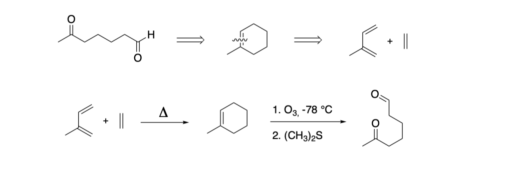IN questo caso il prodotto da sintetizzare ha un carbonio in più e una insaturazione. Il doppio legame si può formare attraverso una reazione di disidratazione: