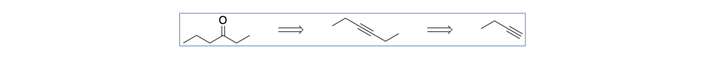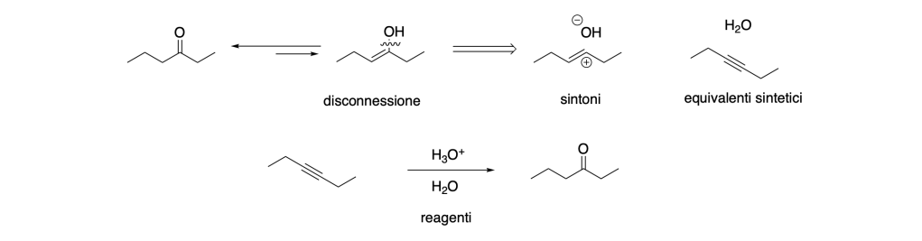 L’idratazione del 3-esino porta alla formazione di un enolo che tautomerizza immediatamente a chetone, quindi l’analisi retrosintetica è la seguente: