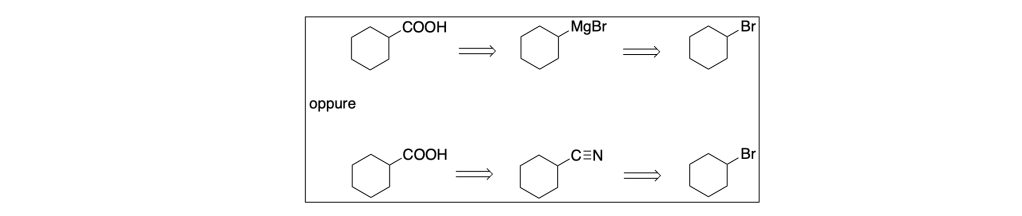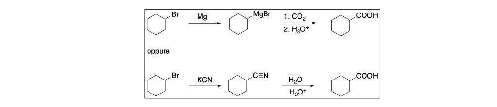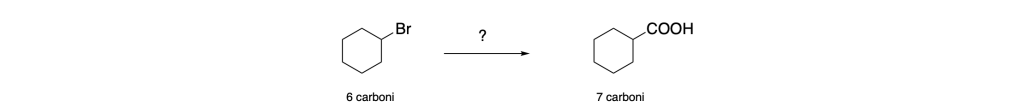 Sintetizzare l’acido cicloesancarbossilico a partire dal bromocicloesano: