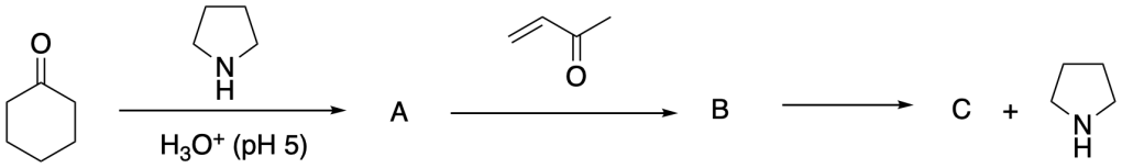 La seguente sintesi degli steroidi contiene delle versioni modificate di due tipologie di reazioni che sono state studiate nel capitolo degli “enoli ed enolati”. Identificare queste tipologie e scrivere i meccanismi dettagliati per le due trasformazioni illustrate di seguito: