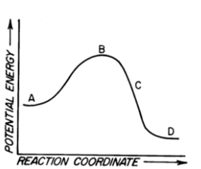 Di seguito è mostrato il diagramma energetico di una reazione. a) individuare lo stato di transizione; b) dire se la reazione è esoergonica o endoergonica? c) cosa possiamo dire circa la costante di equilibrio di questa reazione?