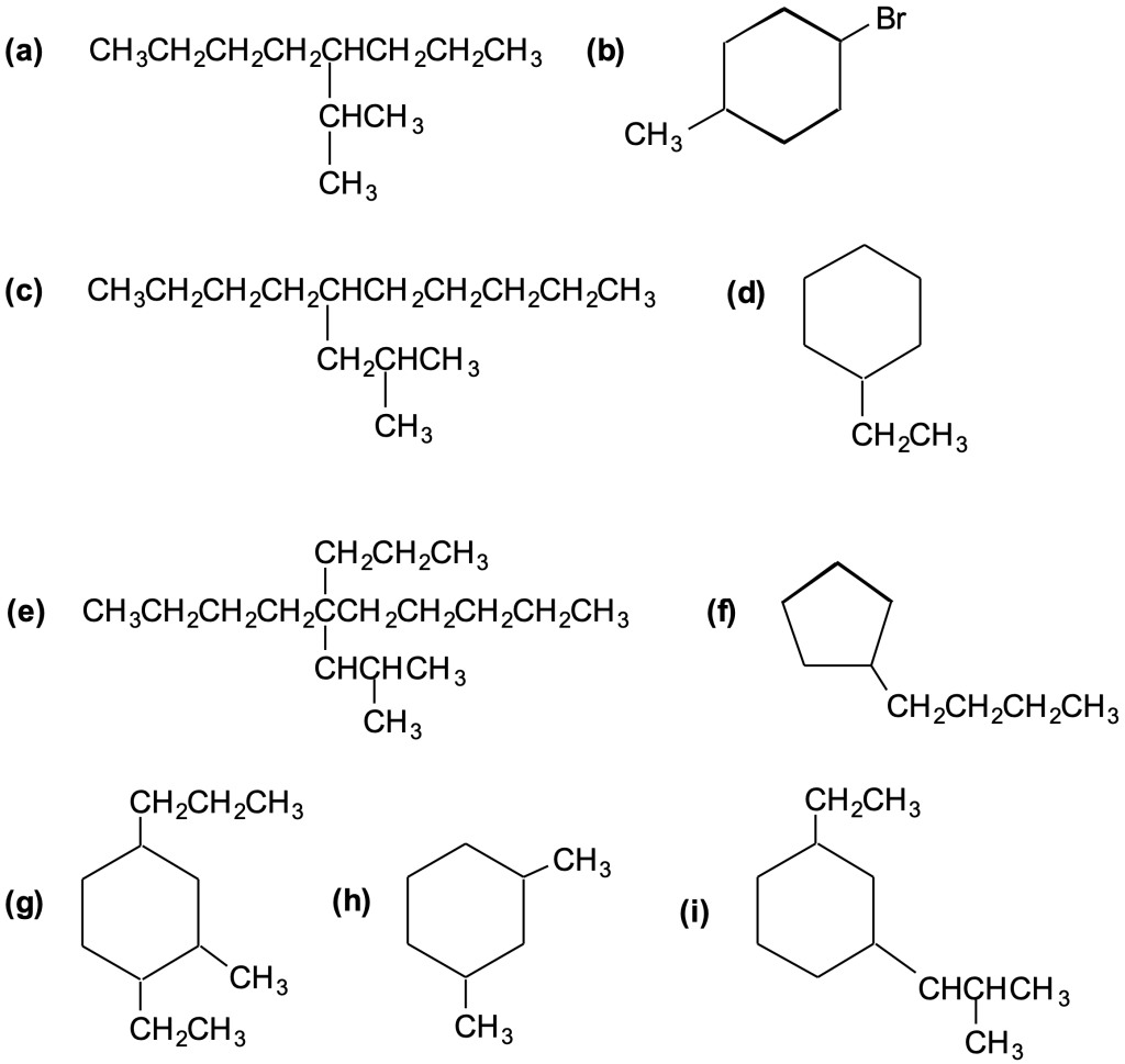 Convertite i seguenti nomi nelle corrispondenti strutture molecolari. Dopo averlo fatto, controllate se il nome di ciascuna molecola che vi è stato fornito qui è in accordo con le regole IUPAC di nomenclatura. Se non lo è, denominate la molecola nel modo corretto.