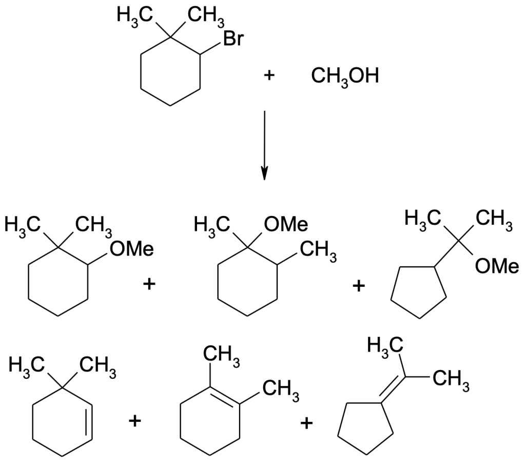 m) 1-bromo-2-metilenecicloesano + metanolo