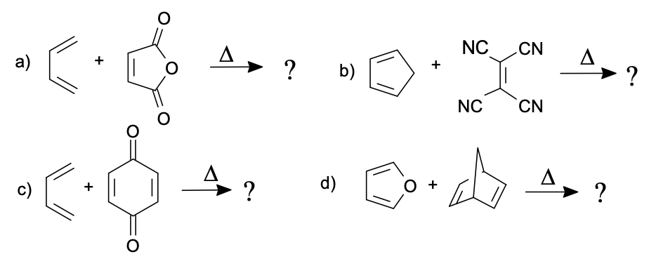 2. Prevedere i prodotti delle seguenti reazioni di Diels-Alder: