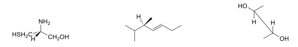 Attribuire le configurazioni R o S a ciascuno dei seguenti composti. Trasformare le strutture tridimensionali in proiezioni di Fisher