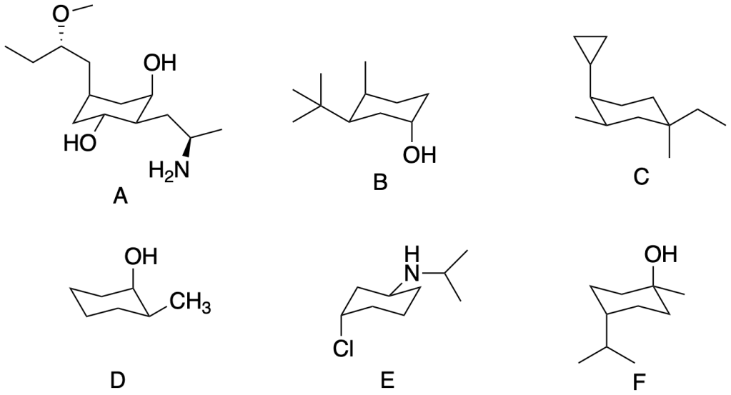 Quali tra i seguenti derivati del cicloesano sono chirali? (Per la determinazione della chiralità, l’anello può essere trattato come se fosse planare).