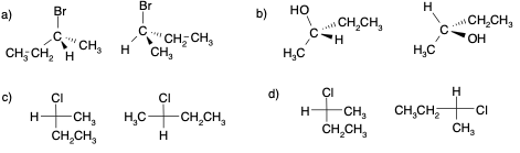 Per ognuna delle seguenti coppie di strutture dire se sono una coppia di enantiomeri o due rappresentazioni dello stesso composto.
