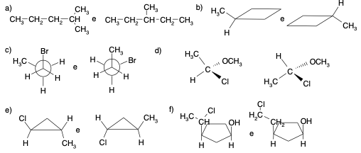 Per ognuna delle seguenti coppie, indicare se si tratta di stereoisomeri, isomeri strutturali, o dello stesso composto: