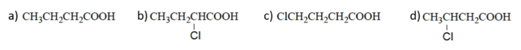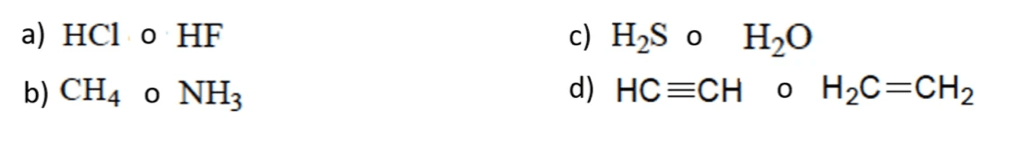 Di seguito sono riportate delle coppie di composti, dire quale composto di ciascuna coppia ha il pK. più basso