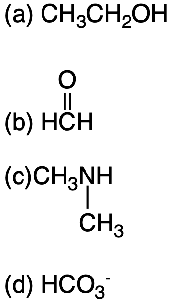 Ciascuna delle seguenti molecole o ioni può funzionare da base. Scrivere la formula di struttura dell’acido coniugato che si forma dalla reazione ddegli stessi con HCl.