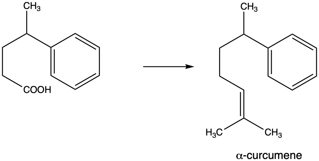 Proporre una sequenza sintetica per convertire l’acido carbossilico A nel sesquiterpene di origine naturale alfa-curcumene