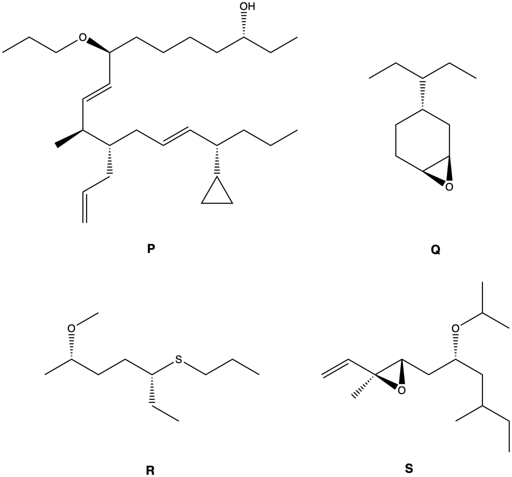 Predire il/i prodotto/i delle reazioni degli alchini 1 – 3 con i reagenti (a) fino a (p) indicando la regiochimica dove appropriato. Si assuma che tutti i reagenti sono in eccesso, se non diversamente indicato.