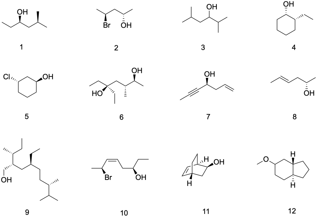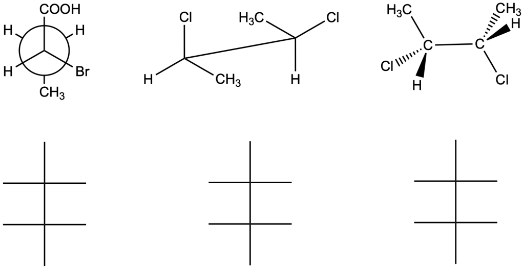 Scrivere ciascuno dei seguenti composti secondo la proiezione di Fischer ed assegnare a ciascuno stereocentro la configurazione, secondo la notazione R,S.