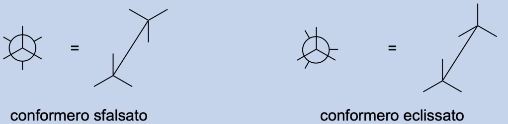 Isomeri conformazionali: diverse conformazioni dello stesso composto in equilibrio tra loro grazie alla veloce convertibilità (rotazione intorno ad un legame singolo). Non possono essere saparati l’uno dall’altro.