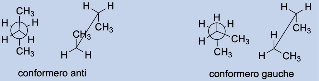 Il conformero anti è più stabile del conformero gauche a causa della tensione sterica