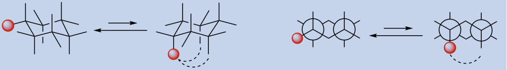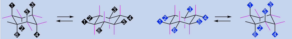 Il cicloesano interconverte rapidamente tra le due conformazioni a sedia ugualmente stabili. Questo processo è chiamato inversione di anello