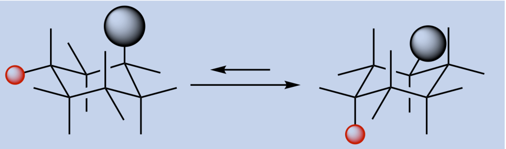 Il conformero a sedia con un sostituente in posizione equatoriale ha meno tensione sterica ed è perciò più stabile del conformero con il sostituente assiale