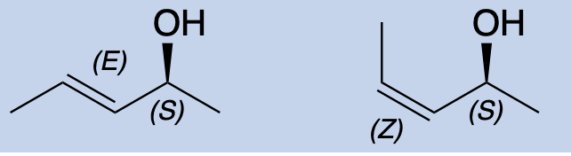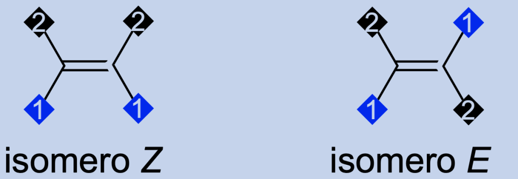 L’isomero Zha i sostituenti ad alta priorità (regole CIP) sullo stesso lato del doppio legame; l’isomero Eha i sostituenti ad alta priorità sui lati opposti del doppio legame.