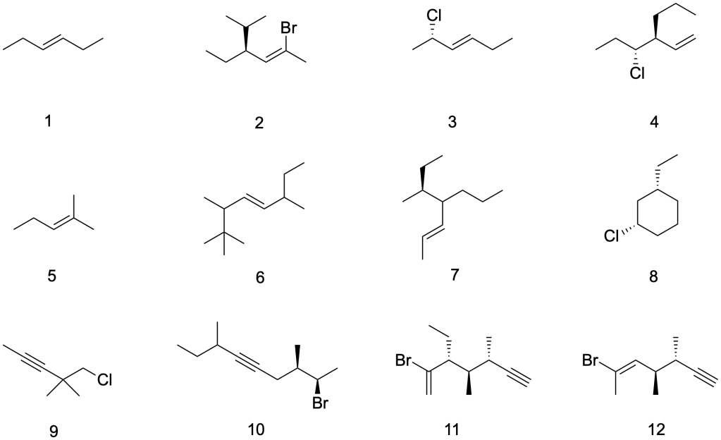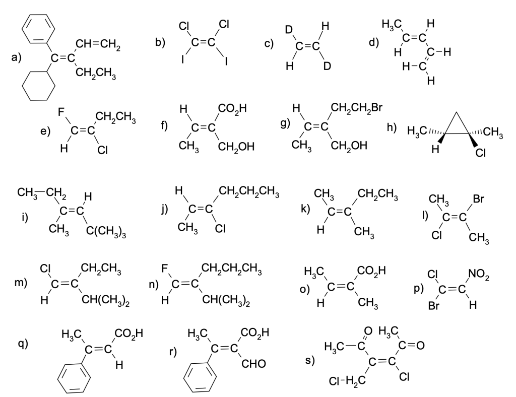 Individuare gli isomeri geometrici (se ce ne sono) dei seguenti composti e scriverne le formule