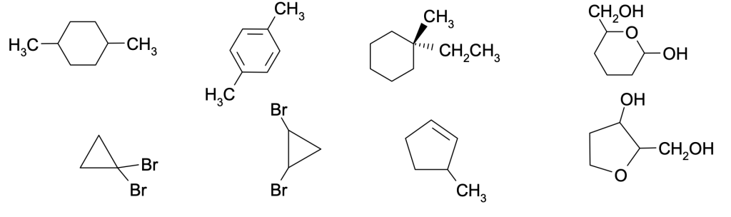 Quali tra i seguenti derivati del cicloesano sono chirali? (Per la determinazione della chiralità, l’anello può essere trattato come se fosse planare).