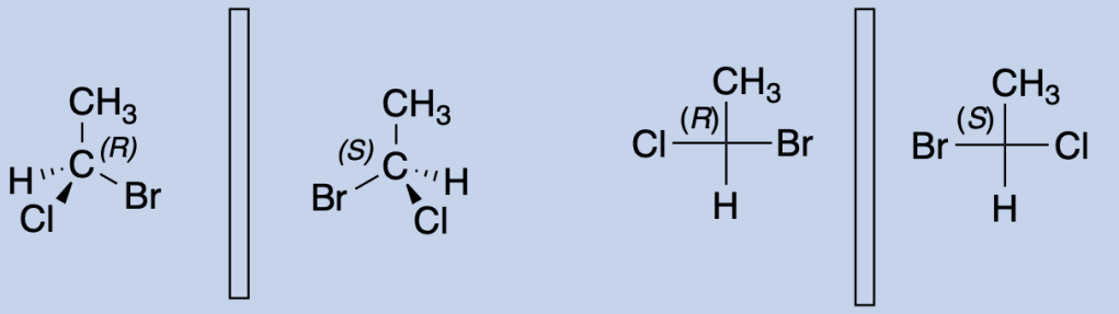 Isomeri ottici: composti in cui sono presenti degli elementi stereogenici, cioè elementi a causa dei quali la molecola ammette due isomeri che sono uno la forma speculare non sovrapponibile dell’altro.