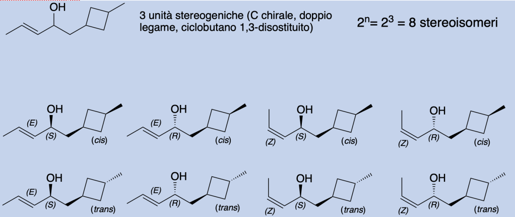 Identificare le unità stereogeniche dei seguenti composti ed assegnare ad ognuna di esse la configurazione (R/S, E/Z o cis/trans). individuare, inoltre, i composti otticamente inattivi.