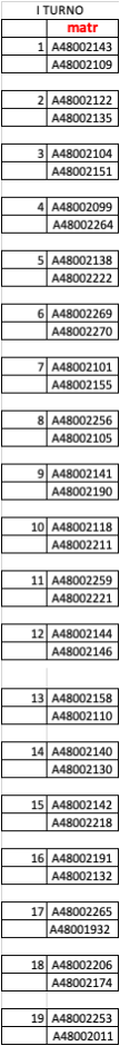 Gli studenti identificati dai colori giallo e arancione hanno superato con riserva. Anche gli studenti che hanno superato con riserva sono ammessi a sostenere l’e prove intercorso del secondo semestre l’ultima prova.
