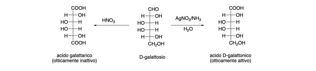 4. Disegna le proiezioni di Fischer dei prodotti formati per reazione del D-galattosio (epimero in C-4 del glucosio) con (a) HNO3 e (b) AgNO3 in NH3, H2O (reazione di Tollens). Indicare se ciascun prodotto è otticamente attivo o inattivo.