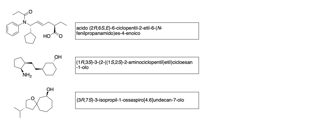 3. scrivi il nome IUPAC dei seguenti composti specificando la stereochimica (3 pt)