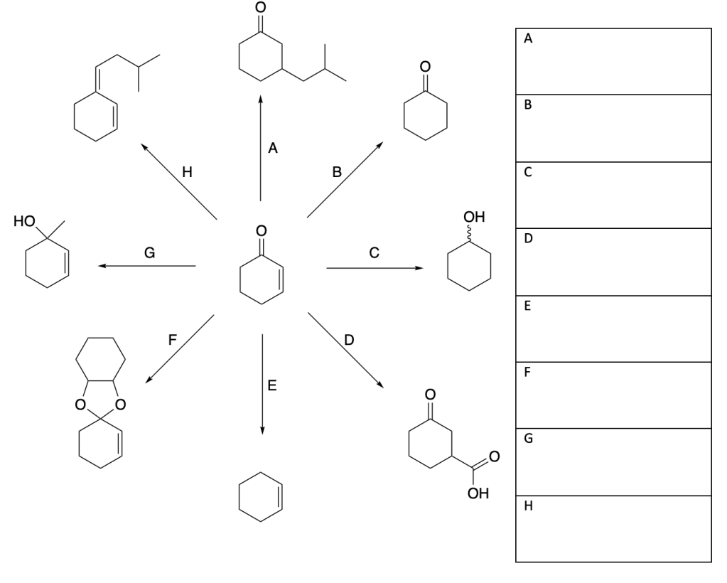 2. scrivi i reagenti mancanti per ciascuna delle seguenti trasformazioni; alcune reazioni richiedono più di un passaggio. (5 pt)