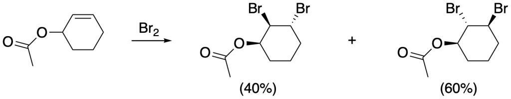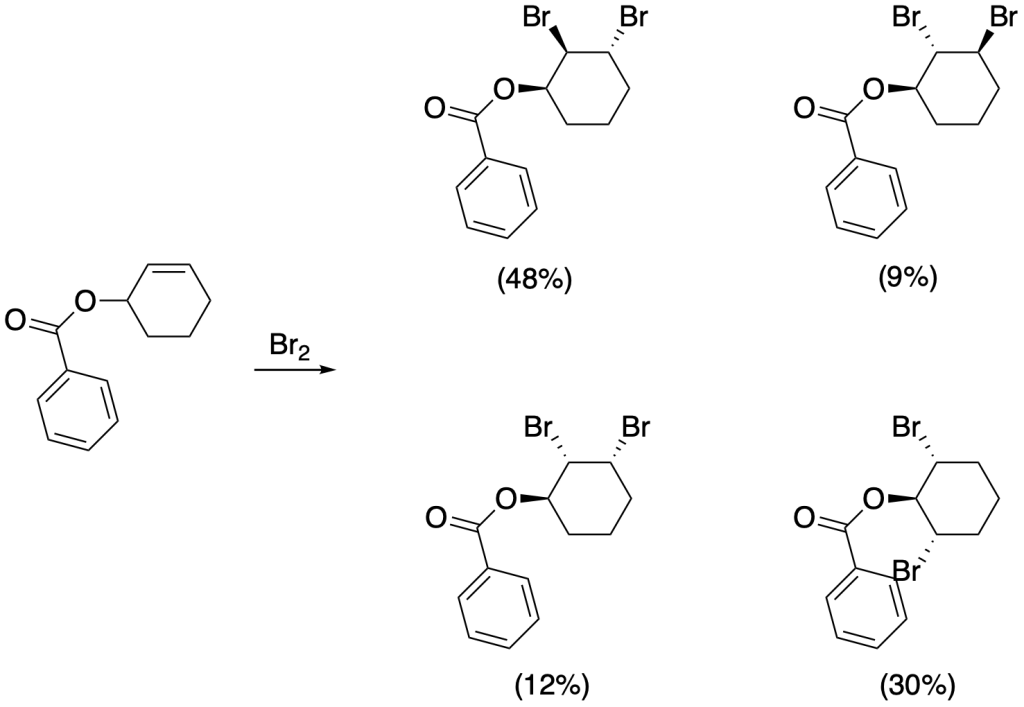 La bromurazione del 3-benzoilossicicloesene, invece, dà luogo ad una miscela di prodotti di addizione: