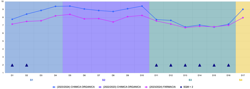 Anche quest’anno il corso annuale di Chimica Organica si è concluso con la sessione estiva di esami e i numeri raccontano un risultato incoraggiante: il 58% degli studenti che ha seguito con costanza ha superato l’esame. Di questi, l’84% ha ottenuto un voto tra 24 e 30, e il 58% di chi ha superato l’esame ha raggiunto il massimo dei voti.