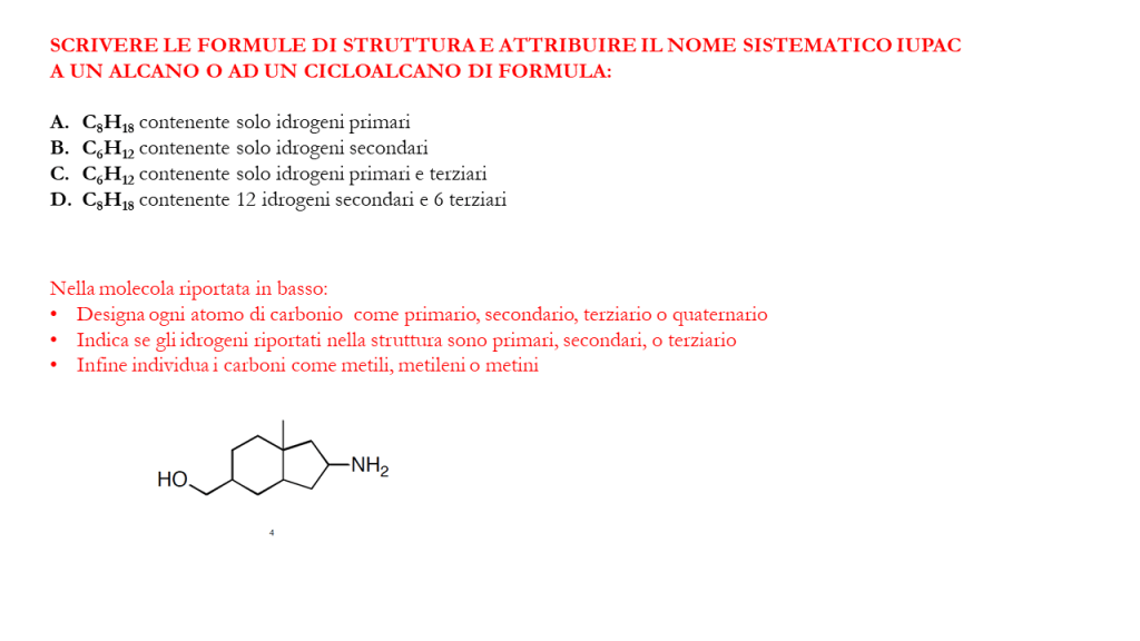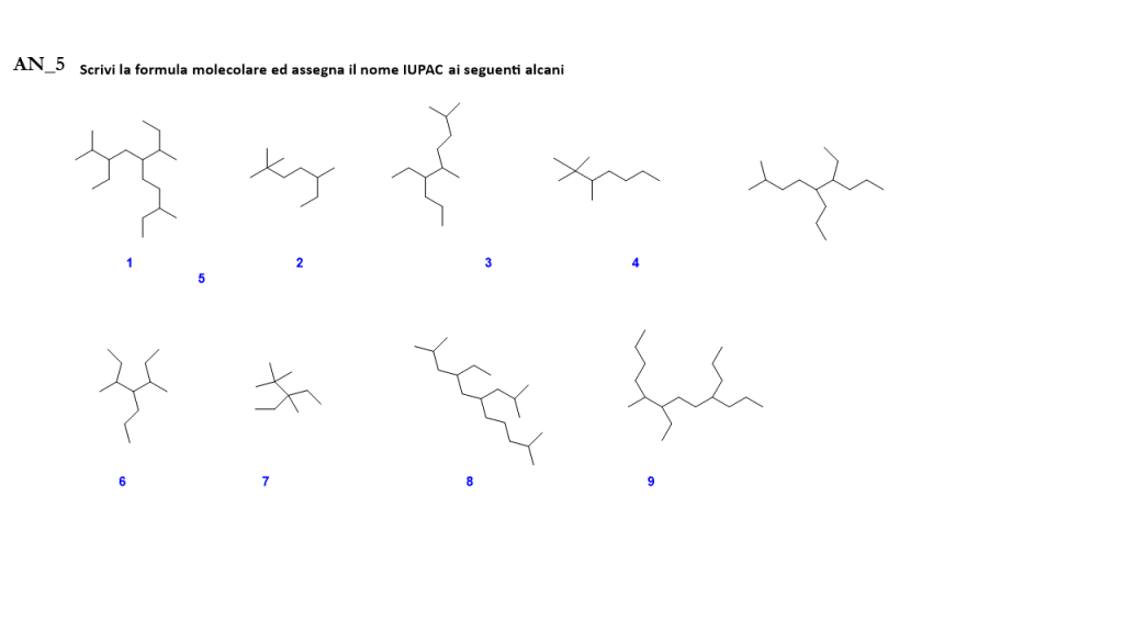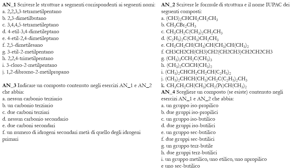 Esercizi inerenti gli isomeri strutturali e la nomenclatura degli alcani