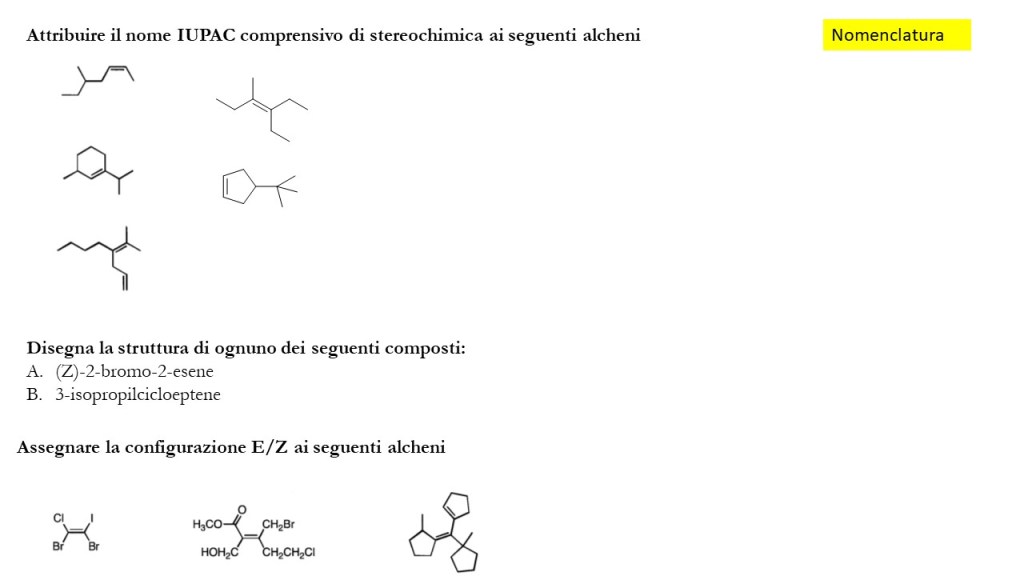Primo set di esercizi sugli Alcheni