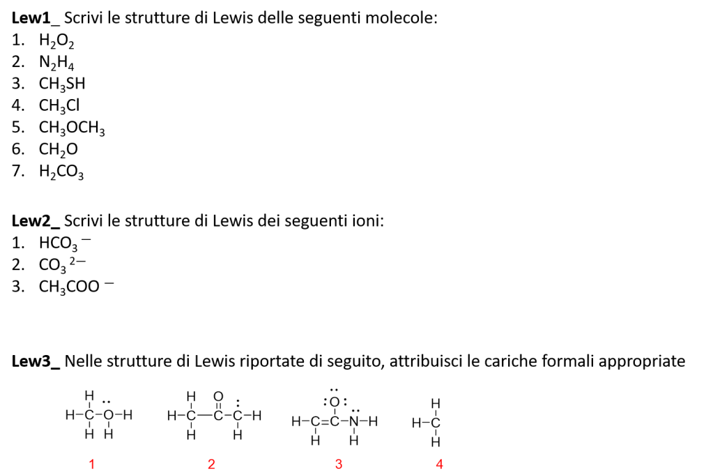 Esercizi inerenti le strutture di Lewis, strutture segmentate, ibridazione