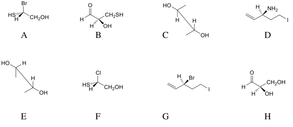 1. Trasformare le seguenti molecole in strutture a cavalletto. Individuare quale di esse è un composto meso