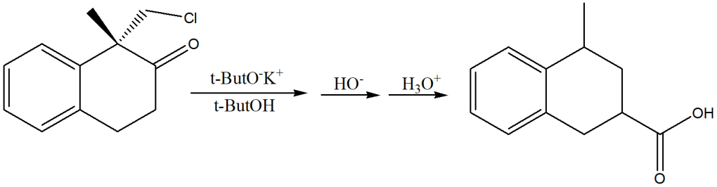1. Mostrare i primi passaggi della reazione utilizzando una rappresentazione a sedia della porzione della molecola costituita dal cicloesanone. Potete anche “sottintendere” la presenza dell’altro anello in questa fase, indicandolo nel modo seguente: