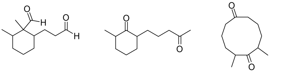 A seguito della reazione di disidratazione di un alcol SECONDARIO di formula C12H22O, si ottengono tre alcheni che poi, a seguito di una reazione di ozonolisi e successivo trattamento con dimetilsolfuro, danno i seguenti prodotti: