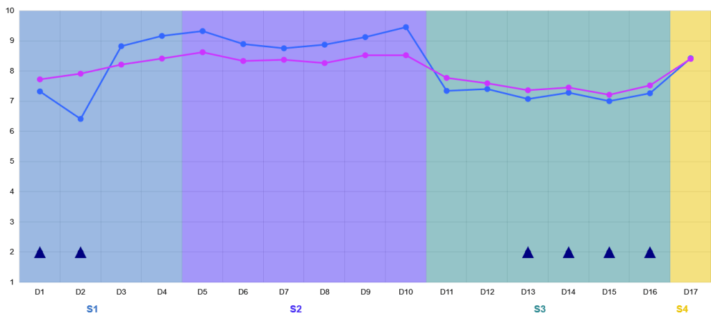 In blu le valutazioni del Corso di Chimica Organica, in rosa quelle del Corso di Studio in Scienze Biologiche