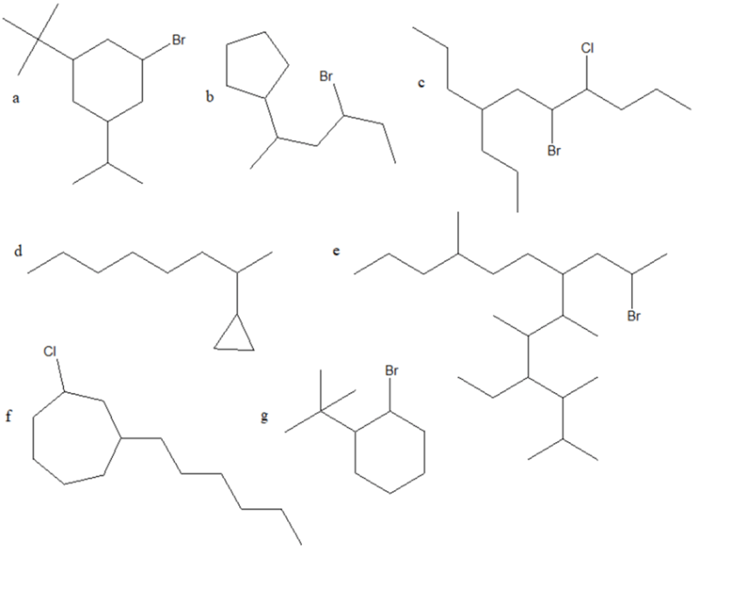 9. Disegnare il 4-(3-bromo-3-metilbutil)-2-terz-butil-1-etilcicloesano.