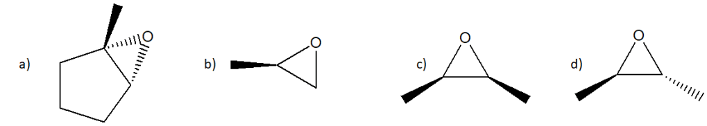 2) Scrivere il prodotto o i prodotti delle reazioni dei seguenti epossidi con I) ione idrossido II) acqua in ambiente acido III) ione cianuro(–C≡N).