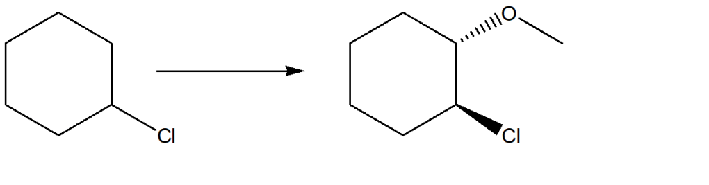 16) La reazione del composto mostrato in figura con una base forte, come il metossido di sodio, non produce come prodotti di eliminazione cicloseni sostituiti in quantità apprezzabile. D’altra parte, la solvolisi in metanolodà una miscela di prodotti, incluso il cicloesene sostituito. Spiegare queste osservazioni.