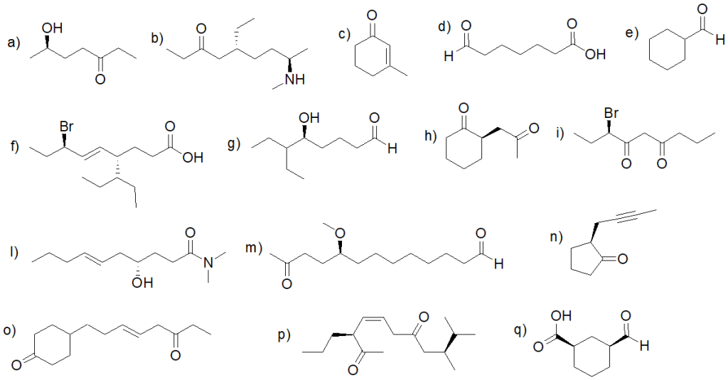 NB: per alcune classi di composti (es. lattoni, lattami, anidridi, nitrili, ecc.), che non sono presenti in questo set di esercizi, non sarà richiesta la conoscenza delle regole di nomenclatura IUPAC, ma sarà in ogni caso necessario saper riconoscere il gruppo funzionale.