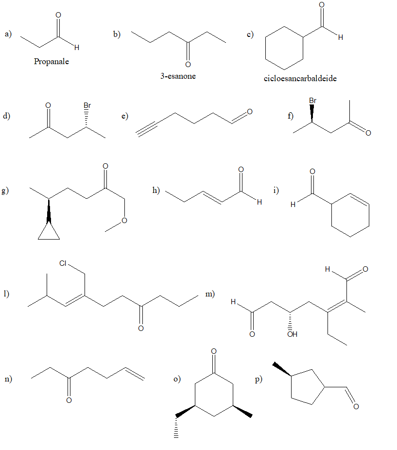 I seguenti set di esercizi comprendono esercizi di nomenclatura relativi ai composti carbonilici e includono anche gruppi funzionali per i quali non abbiamo ancora affrontato la nomenclatura a lezione (questa parte sarà completata lunedì).