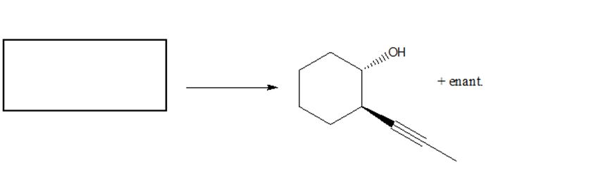 3. Mostrare il meccanismo di apertura del seguente epossido a) con metanolo in ambiente acido; b) con lo ione acetiluro ottenuto trattando l’etino con NaNH2. Mostrare la stereochimica dei prodotti. Attribuire il nome IUPAC all’epossido e ai prodotti formati.