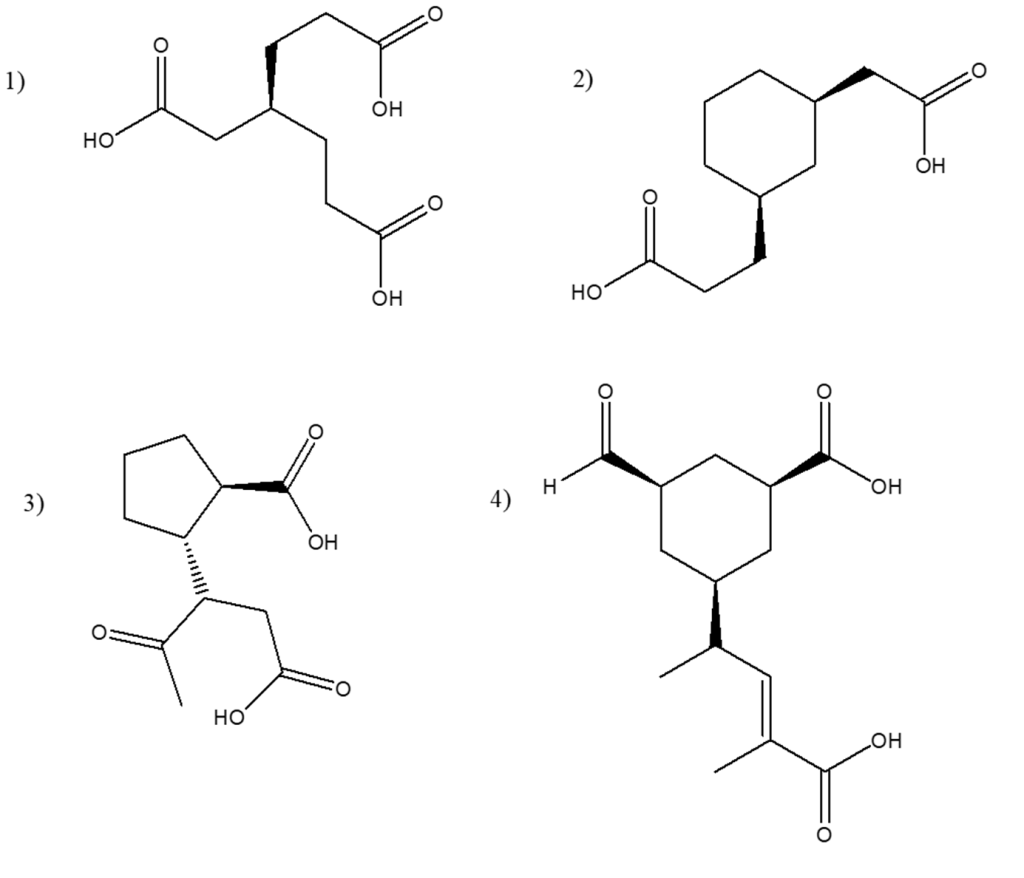 Il gruppo carbossilico sarà denominato come un sostituente solo quando è ripetuto più volte nella stessa molecola, ma non può essere incluso tutte le volte nello scheletro principale (e quindi non possiamo usare il suffisso -dioico, -trioco, etc.). Esempio: