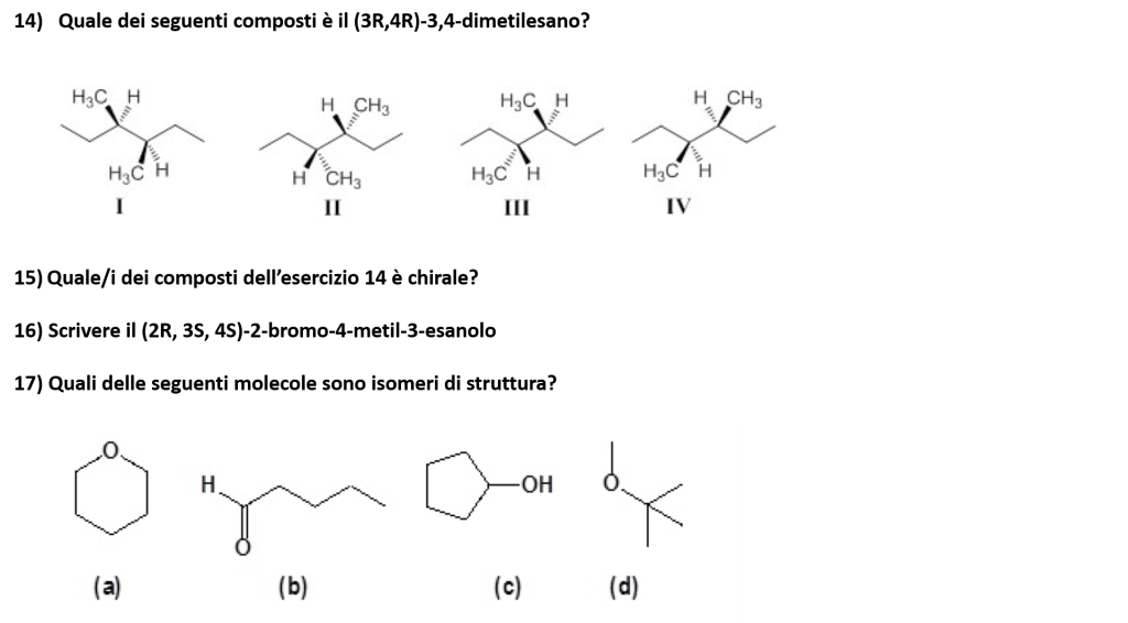 Indicare con un asterisco gli atomi di carbonio chirali (se ce ne sono) nei seguenti composti:
