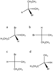 2) Indicare qual è la relazione (isomero strutturale, conformero, enantiomero, diastereoisomero, stesso composto, etc.) delle strutture a, b, c, d con il composto qui mostrato: